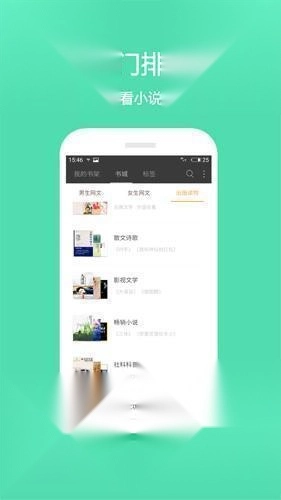 2、点击书城可以看到男生、女生、出版等分类;