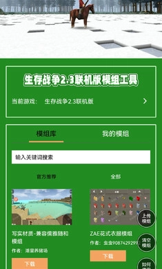 生存战争2.3联机版模组工具 这里有海量模组可供选择,你能在工具里通过关键字直接搜索到想要的模组,随后将其导入手机游戏中,为游戏增添独特的模组内容,让我们的游戏体验更加丰富。此外,工具还会推荐各类精品模组,等待你去探索尝试。