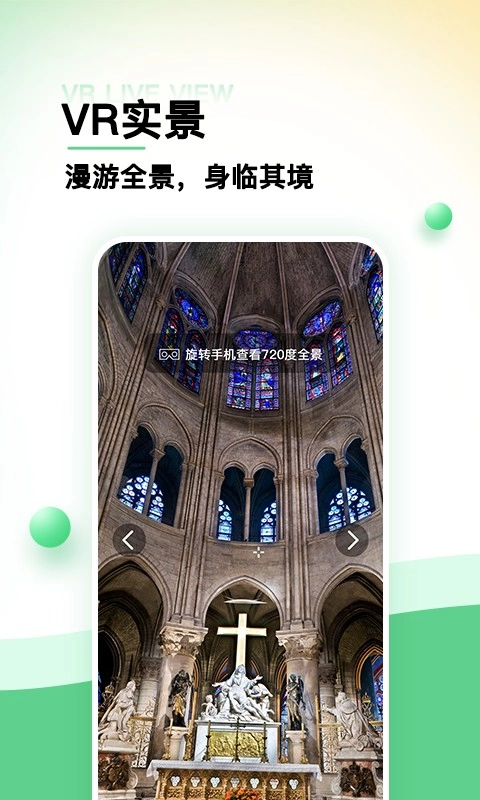 用户可以通过VR实景的方式,720度来观赏不同的景点名胜详细信息
