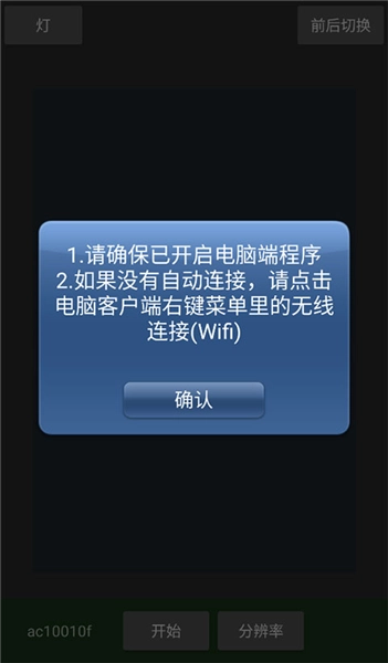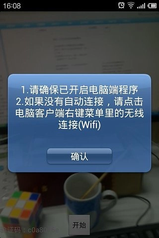 手机打开后,若已连接上WiFi网络,下方会出现一个WiFi连接代码,将其输入到电脑端,点击“开始”按钮即可。