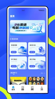 自适应词库功能:会依据用户的实际水平,灵活匹配四六级、雅思、职场等不同类型的词库内容,同时融合图像记忆、词根词缀解析等多元训练方式,助力用户高效记忆单词。