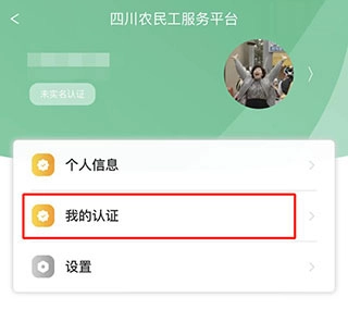 首先我们登录四川农民工服务平台,接着点击【我的认证】选项。