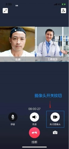 看诊结束后,点击挂断按钮就能结束通话。到这里,整个在线门诊的流程就完成了。