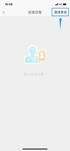 ②若您是第一次使用该功能,从发热门诊入口进入在线诊室页面后,在线诊室列表不会显示任何内容和记录,您可点击页面右上角的“邀请患者”,进入分享诊室界面。