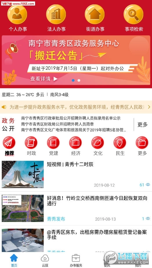 手上青秀是广西南宁市青秀区人民政府推出的手机政务办理软件,它整合了办事、资讯、政务等各类服务,用户通过这款软件足不出户就能办理多种事项。