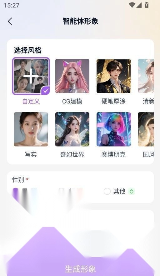 2、还可以亲手创建AI角色呢,挑选风格、设定性别,上传参考图片,再补充一些角色设定,专属于你的独特小伙伴就诞生啦~
