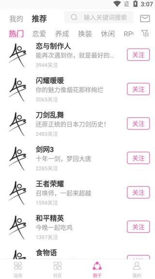 4、点击“圈子”板块,这里汇聚了王者荣耀、和平精英、闪耀暖暖等当下热门游戏圈,用户可选择关注感兴趣的圈子,与其他同好玩家交流互动。