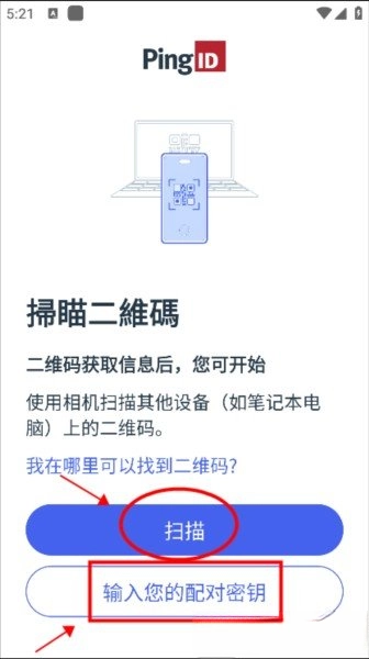 1.进入软件后,可按照提示选择扫描功能,也能直接手动输入您的配对密钥。