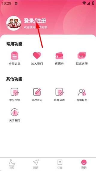 在悦然到家的首页,点击右下角的“我的”选项,就能进入个人页面。