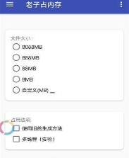 《老子占内存》是一款颇具创意且趣味性十足的实用小工具。当你的设备存储空间尚有富余时,不妨通过它将可用内存压缩至所剩无几,还能打趣地宣称这些空间都被学习资料占满了。虽然不太清楚开发者最初的设计初衷,但单从搞怪工具的角度来看,它确实表现不俗——无论是文件命名、安装包大小,还是数据的保存路径,用户都能根据需求自由定制。
