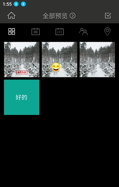 5、点击小贴纸,既能利用软件自带的贴纸让图片更富个性,也可以添加额外素材。