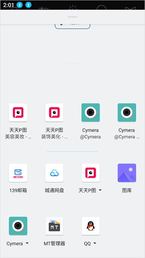 1、打开最新版的Cymera,在首页就能看到照相机、图片库、美颜自拍、触屏整形等常用功能的入口;