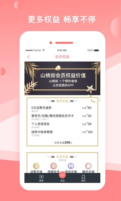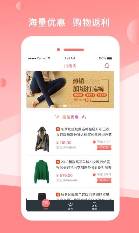 山桃街是一款网购手机应用,为用户提供海量精美商品,任您随心挑选,带来多元丰富的服务体验;平台不仅设有购物返利机制,还汇聚了海量优惠活动,让您在购物时既能省钱又能“赚钱”,享受别具一格的消费服务;助您开启科学的购物模式,分享优惠可进一步节省开支,同时平台会推出各类趣味小活动,完成任务即可解锁更多福利,让您省不停;开通会员更能尊享额外优惠权益,为您打造一个集省钱与“赚钱”于一体的优质购物平台。