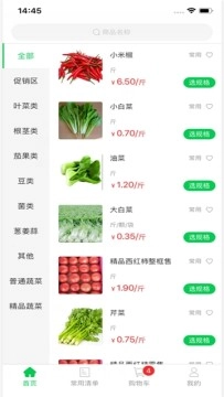 快摘快送平台上有大量的蔬菜水果以及生鲜产品,可供用户挑选购买。