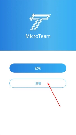1、在微队首页找到注册按钮并点击,随后进入手机号码验证页面。