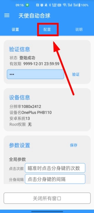 卡密验证通过后,我们点击配置选项,进入功能参数设置板块。