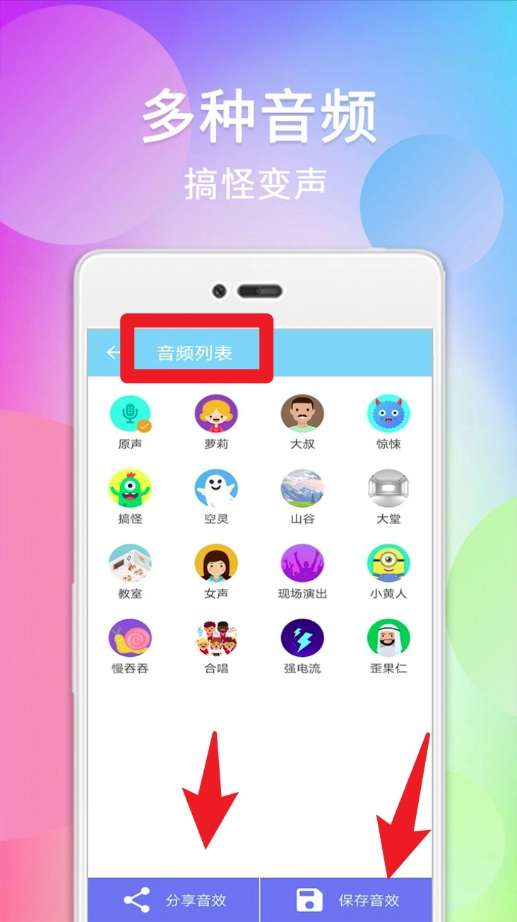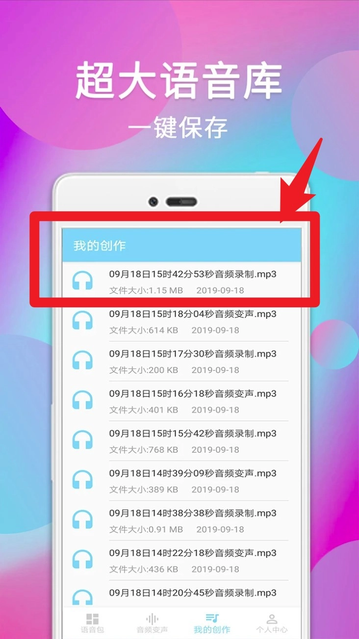 录音结束后会自动跳转到「音频列表」页面,在这里你可以浏览各类语音模板,还能实时试听不同的变声效果。