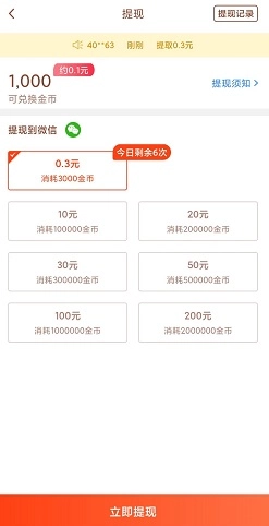 首次登录的新用户能马上得到1000金币的奖励,而且他们每天都能在首页领取免费金币。这些金币可以兑换成现金,并且会立即到账。