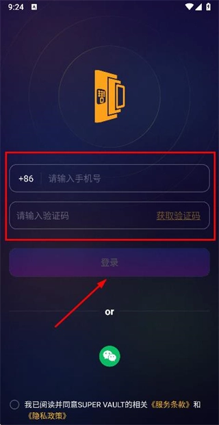 3、在登录页面输入手机号与验证码,勾选相关协议后,点击登录按钮,即可完成账号登录流程。