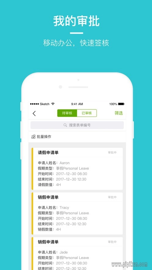 企业管理层可以在手机上及时批复员工的申请。