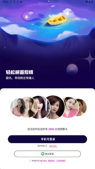 4、进入手机账号登录区域,填写账号并输入验证码,就能进入交友界面。