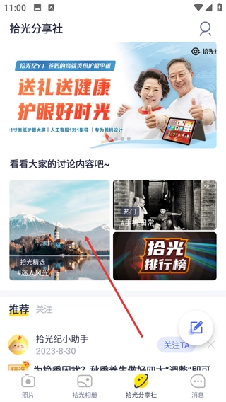 进入【拾光精选】列表页后,你可以浏览各类分享内容,点击想要查看的内容卡片,就能进入该内容的详细展示页面。