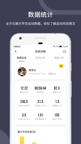 3. 运动数据管理:教练可以远程查看学员的运动数据,包括跑步里程、骑行时长、消耗的千卡等,全面了解学员的运动表现。