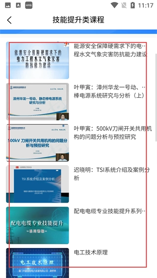 4、进入【技能提升类课程】列表,可浏览《能源安全保障硬需求下的电力工程水文气象灾害防抗能力建设》等课程,按需选择学习。