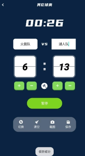 4、实时计分:在比赛过程中,用户可以通过软件实时记录两队的得分。支持语音播报功能,使计分过程更加直观、高效。