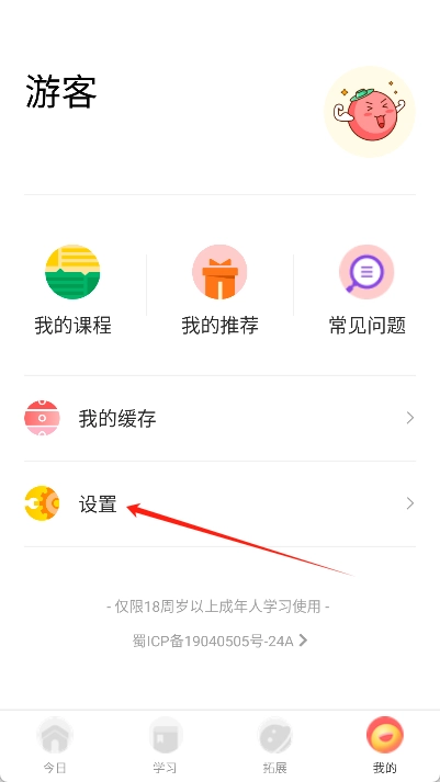 2、进入我的界面后点击【设置】选项。