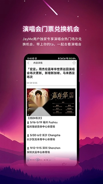 5.【专享购票优惠】JayMe用户可享专属演唱会购票折扣,和ta一起留下难忘回忆!