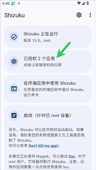 1、使用该软件的首要步骤是通过Shizuku授权激活,若不清楚如何启动Shizuku,可前往Shizuku官方渠道或相关说明页面查询具体方法。