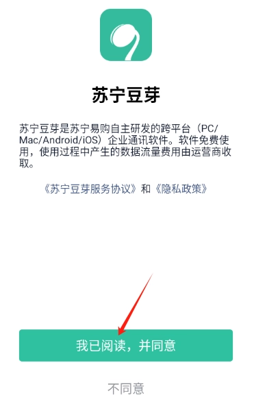 1.安装并打开苏宁豆芽,点击我已阅读,并同意