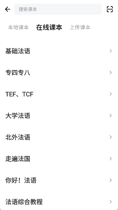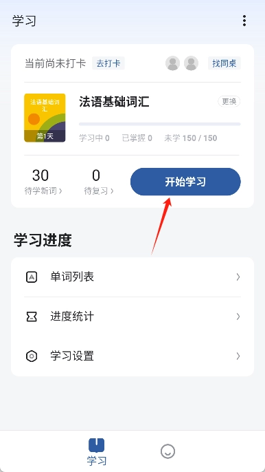 4. 选好课本后,点击“开始学习”按钮就可以学习法语单词了。