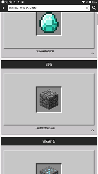 我的世界合成表大全是一款非常实用的游戏辅助工具软件,提供了全面的物品合成表,从基本物品到复杂工具应有尽有,这样子我们就可以在游戏中轻松合成各种物品。并且也可以在搜索栏中输入关键词,快速查找所需要的合成配方,大大提高了玩游戏的效率。而且还会及时地更新内容,与游戏的版本保持同步。此外还提供了大量的游戏教程可以观看,快来体验吧!