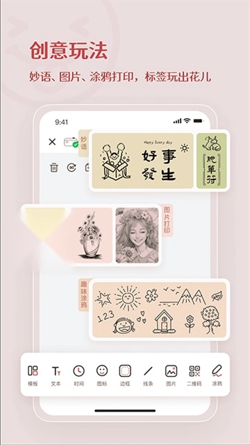 臣小印是一款居家标记管理以及打印软件,非常适合家庭使用、美观大方人性化个性化集一身、赛过手写涂鸦,对比精臣云打印,多了涂鸦打印功能,臣小印里面有海量素材,你可以直接拿来用,而且还有图片、妙语等创意玩法,臣小印不止能打印,还能在里同收获收纳灵感,喜欢的朋友快来吧。