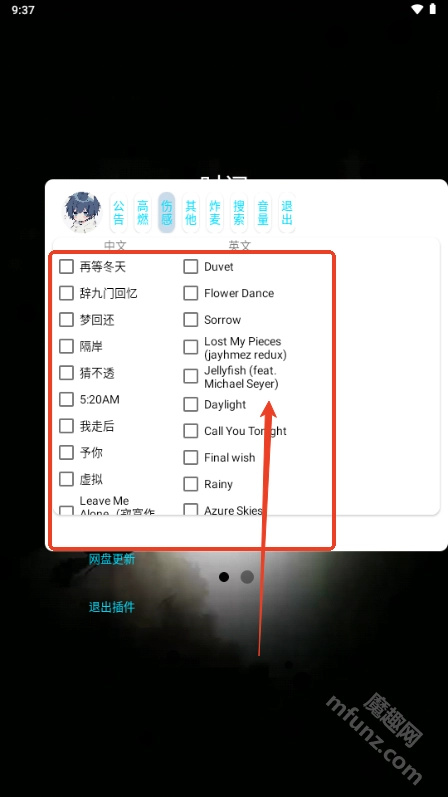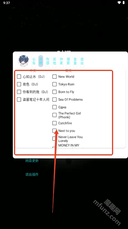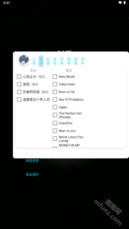 2、悬浮框功能:支持悬浮框对音乐播放进行各种修改操作。