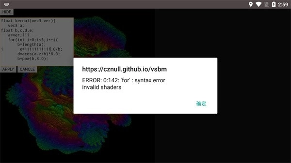 3、自定义着色代码:左侧Config可手动修改着色器,升高或降低渲染精度。