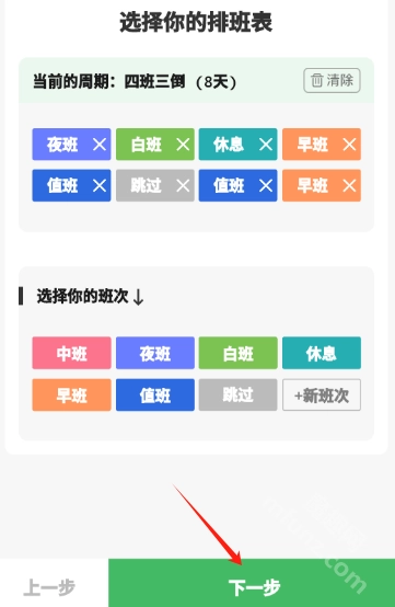 2.然后再选择班次,选完点击下一步