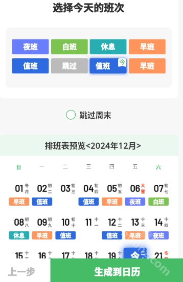 3.再选择今天的班次,点击生成到日历