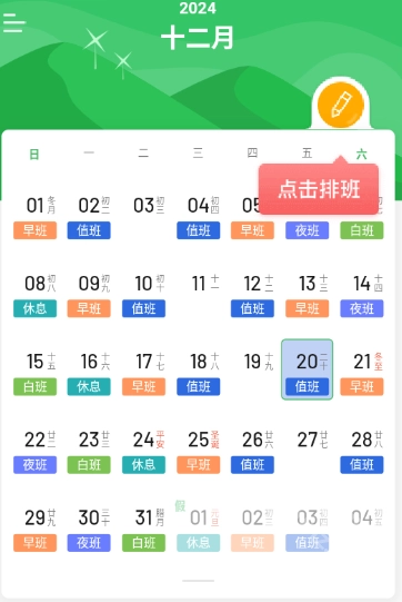 排班日历亮点