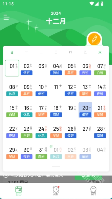 1.安装并打开排班日历,选择排班周期