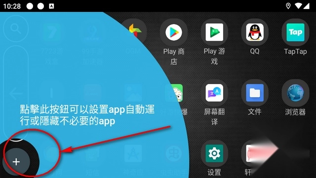 5、点击左下角+号隐藏应用。