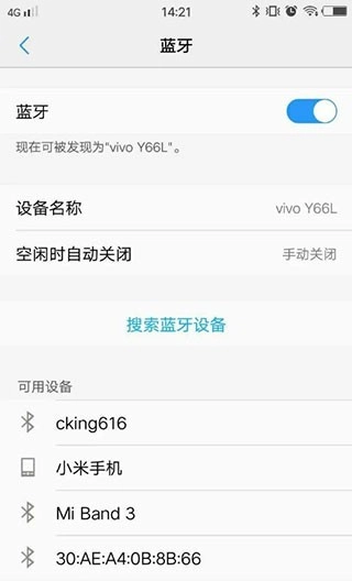 你可以这样操作:先打开手机的蓝牙设置界面,开启蓝牙后搜索附近的蓝牙设备,在搜索结果里找到之前设置好名称的那个设备(比如像我这边显示的cking616),点击该设备发起配对请求,接着输入预先设置的PIN码,就能完成配对流程了。