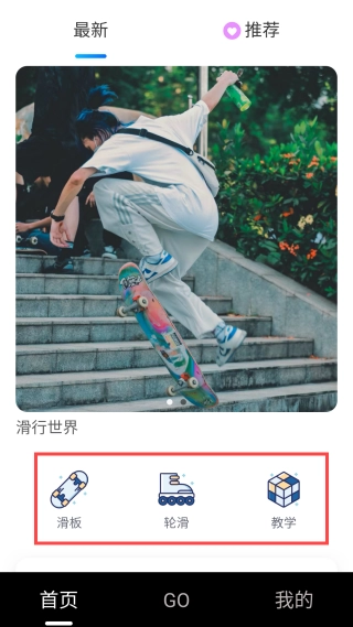 进入首页,了解滑板、轮滑的相关知识并学习技巧。