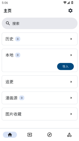 1、主页可以随时查看各种历史技术,也可导入本地漫画资源。