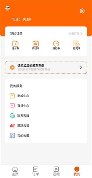 2、进入三兄弟【主页】,可看到救援、保养、事故等功能分类。