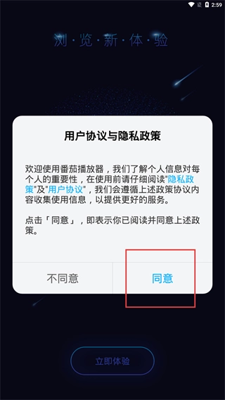 2、确认协议无误后,点击【立即体验】按钮,即可进入应用的核心功能界面,开启您的浏览体验之旅。