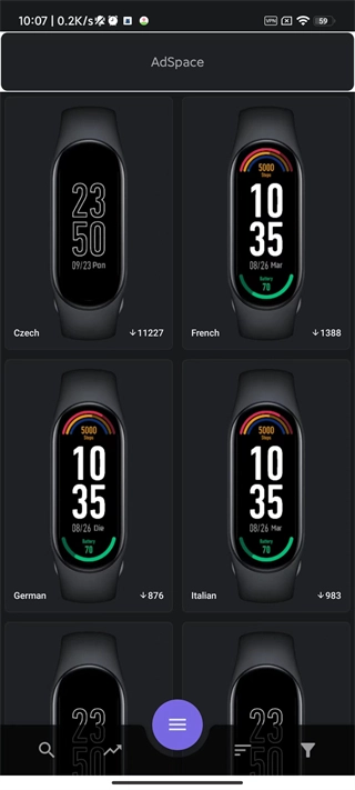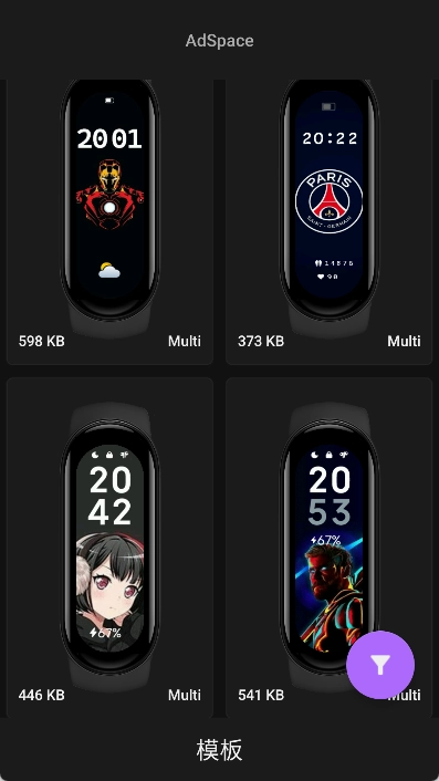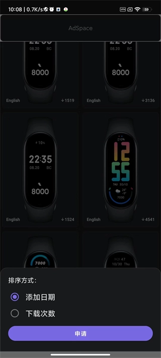 可搜索和过滤手环的表盘,按次数、添加日期排序。