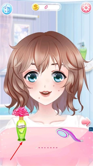 3、进入角色护理界面后,点击【Shampoo】所对应的洗发水道具,就能启动角色的洗护装扮流程,为接下来的护理环节做好准备。